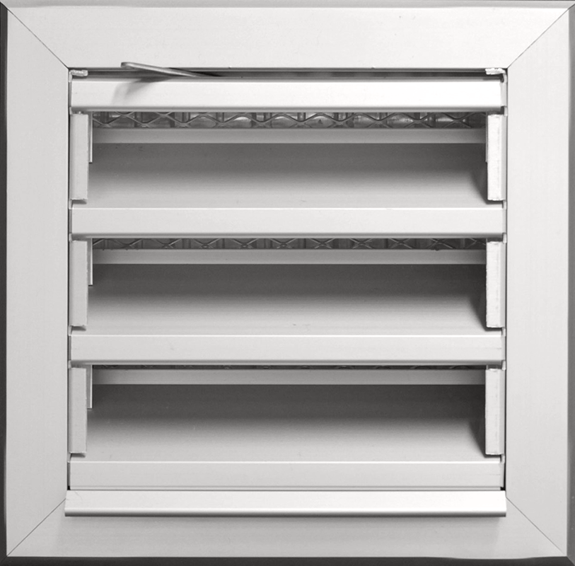 - DKG-PL-E12-15: With galvanized wire mesh and one row fixed blades, 12mm spaced, 15° deflected.
