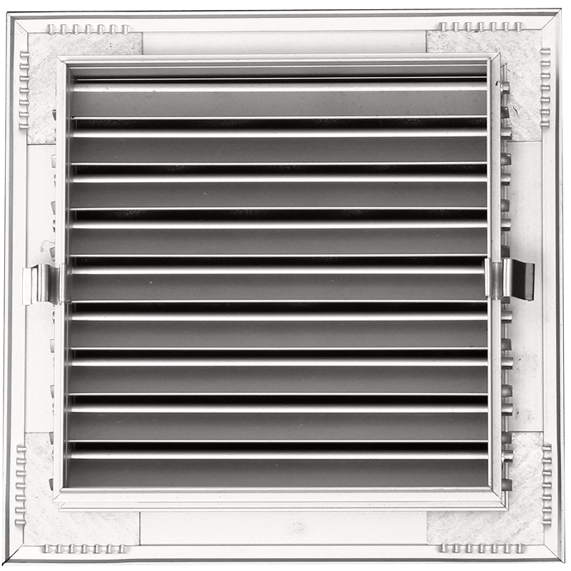 - DKG-PL-E12-15-D: With galvanized wire mesh, one row fixed blades, 12mm spaced, 15° deflected and air volume control damper.