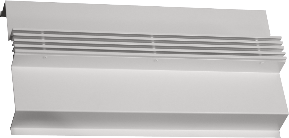 Floor grille, for installation in the base of big glass surfaces. For warm air supply. Also is possible to use it for return air. Made from galvanised steel and anodised aluminium. It is possible to paint it electrostatically in RAL color.