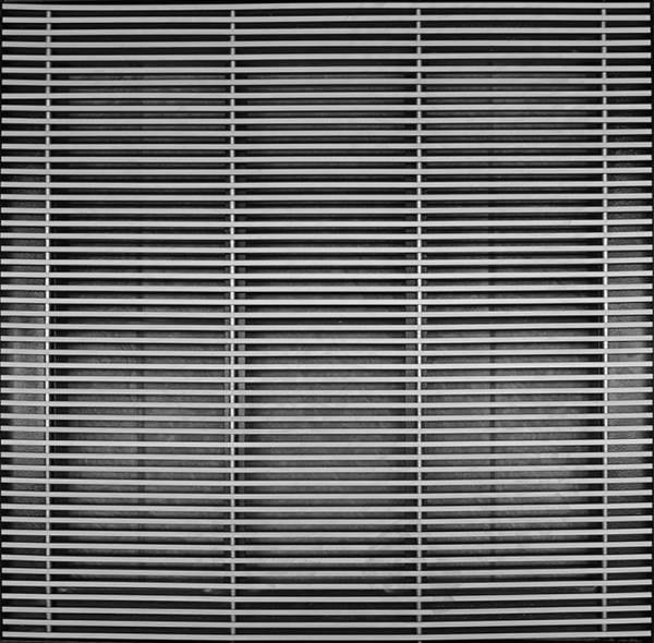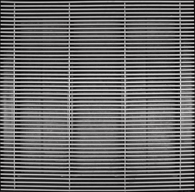 Heavy type linear grille for false floor installation in rooms like data centers etc. For supply or extract air. With steel frame painted black RAL 9005. The blades are made by anodized aluminium, they are fixed and the air jet is vertical to the grille face. Outside dimensions 599X599mm.