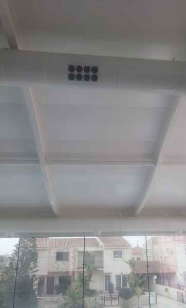 - AMB-AP-Φ42-ON OFF 220V: Set of many jet nozzles in rectangular subframe made by aluminium, anodized or painted electrostatically in RAL color. The subframe is rotated up and down in relation with the external frame. The external frame is also made by aluminium, anodized or painted electrostatically in RAL color. Only the adjustable heads of the plastic jet nozzles (they are produced in certain colors) are visible. The subframe angle is adjusted by electric actuator ON OFF 220V. Maximum dimension 10X2 jets.